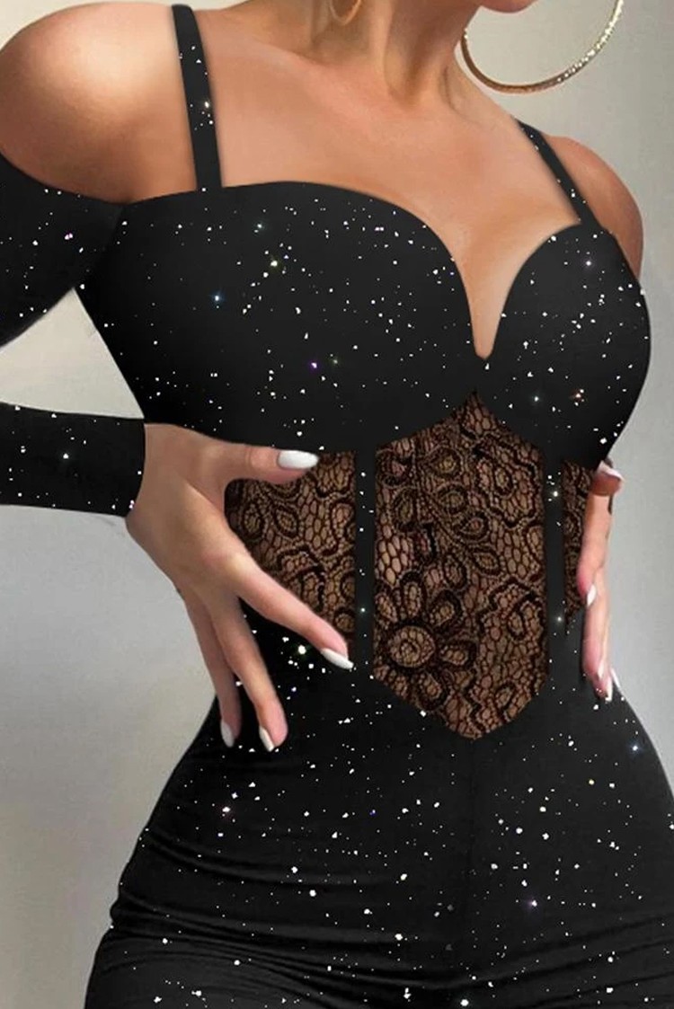 - Δημιουργήστε μια εντυπωσιακή ελκυστική εμφάνιση,με αυτή τη σέξι γυναικεία ολόσωμη φόρμα σε αστραφτερό μοτίβο!