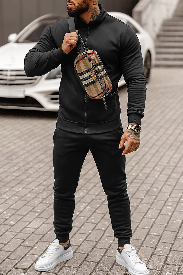 - Αθλητικό ανδρικό σετ δύο τεμαχίων σε γκρι χρώμα, μια κομψή πρόταση για τη δραστήρια καθημερινότητα.