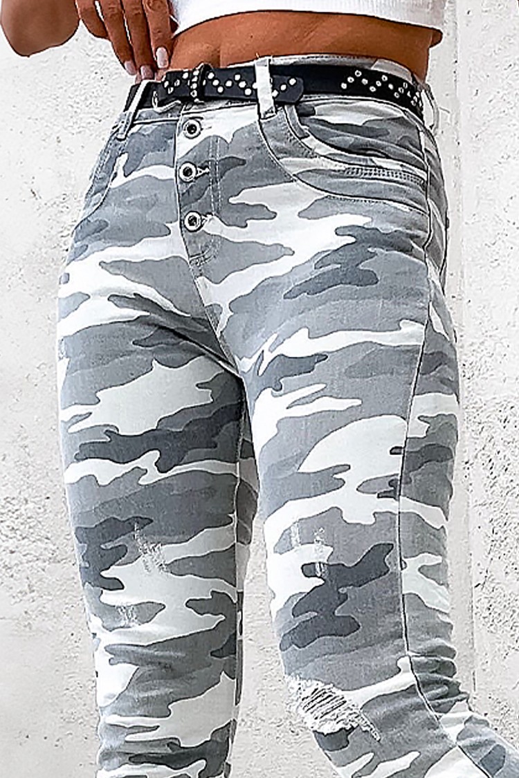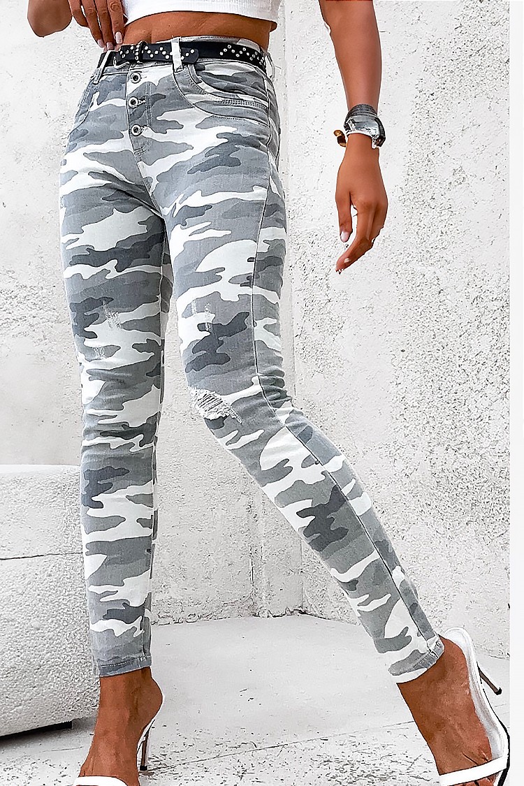 - Μοντέρνο μοντέλο τζιν από υψηλής ποιότητας denim και μοτίβο καμουφλάζ, κατάλληλο για διάφορους συνδυασμούς μόδας.