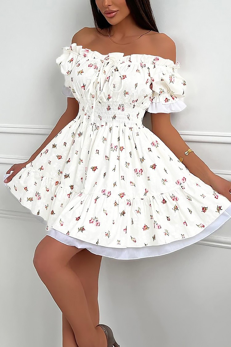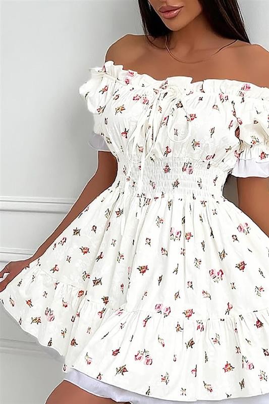 - Κοντό φόρεμα με μοντέρνο σχέδιο σε πολύχρωμο μοτίβο, κατάλληλο για διάφορους συνδυασμούς μόδας.