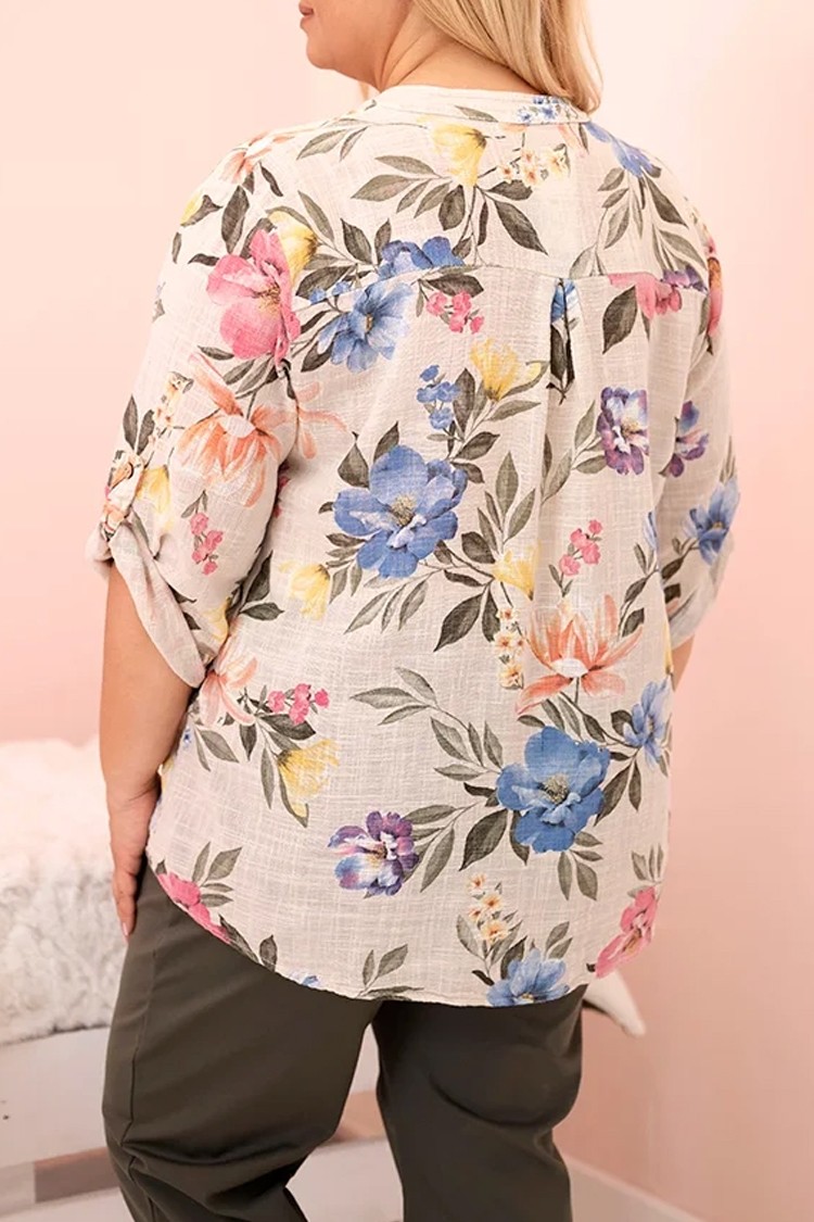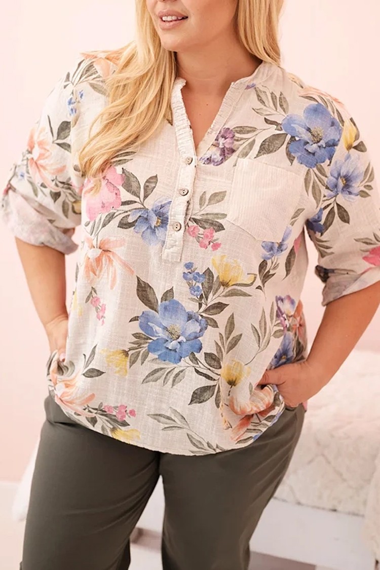 - Το μοντέλο διαθέτει φλοράλ μοτίβο, μακριά μανίκια και κλασικό κούμπωμα κατά μήκος στο μισό μήκος.
