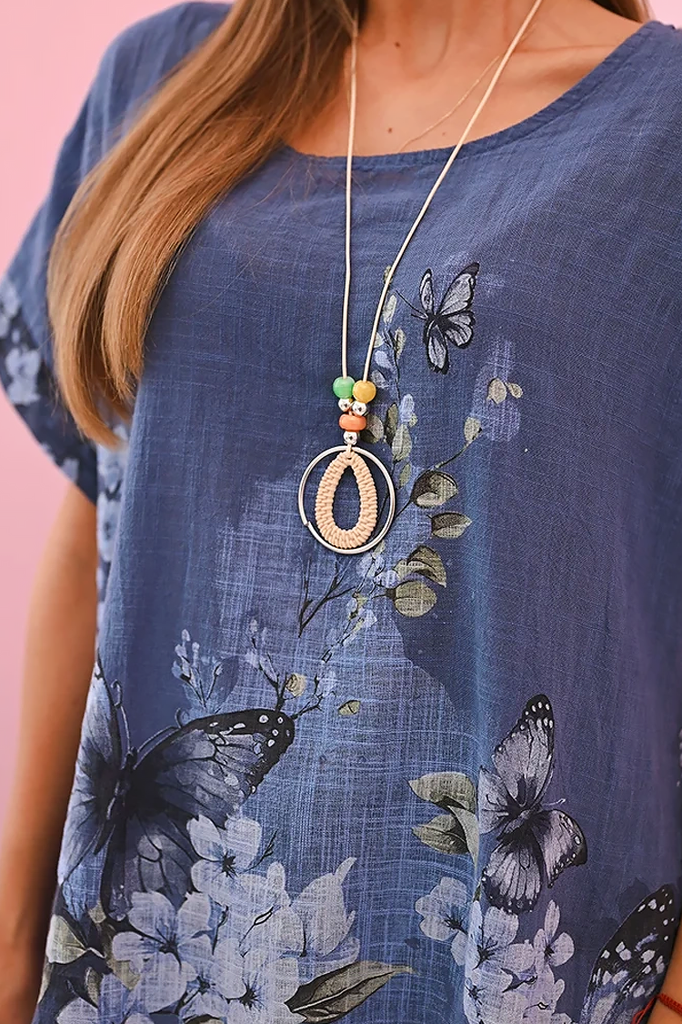 - Το μοντέλο έχει oversized γραμμή, σχέδιο με λουλούδια και πεταλούδες και είναι κατάλληλο για κάθε σωματότυπο.