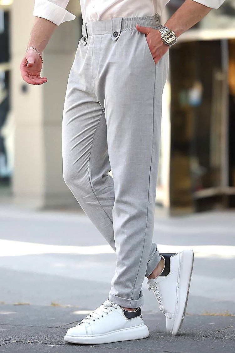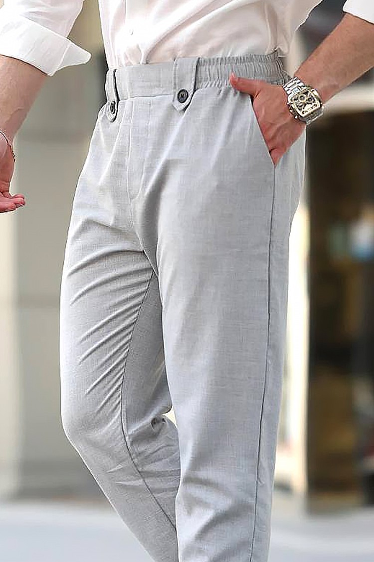 - Σπορ-κομψό ανδρικό παντελόνι σε γκρι χρώμα, με το οποίο θα είστε κομψός.