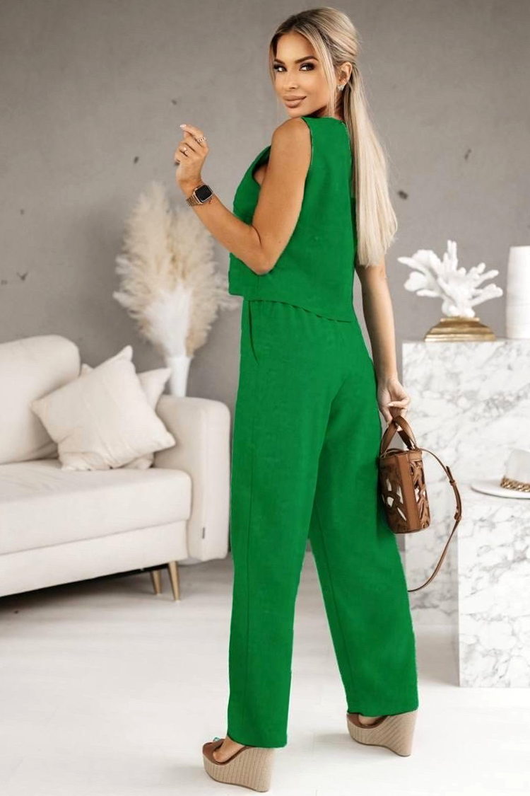 - Σετ από δύο κομμάτια σε πράσινο χρώμα - παντελόνι και τοπ, κατάλληλο για την καθημερινότητά σας.