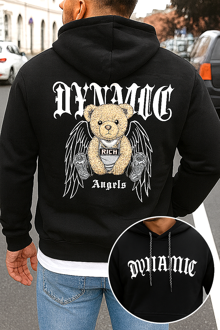 - Το μαύρο φόντο τονίζει την εντυπωσιακή στάμπα στην πλάτη – Λεπτομερής εικονογράφηση με αρκουδάκι, συμπληρωμένη με μεγάλη επιγραφή DYNAMIC σε εντυπωσιακή γραμματοσειρά..