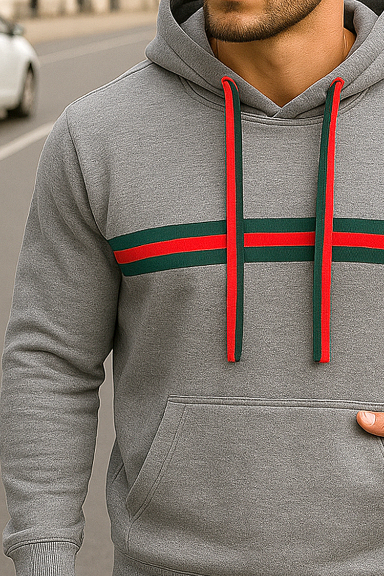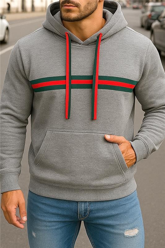 - Πρακτικό ανδρικό φούτερ σε γκρι χρώμα, κατάλληλο για διάφορους συνδυασμούς.