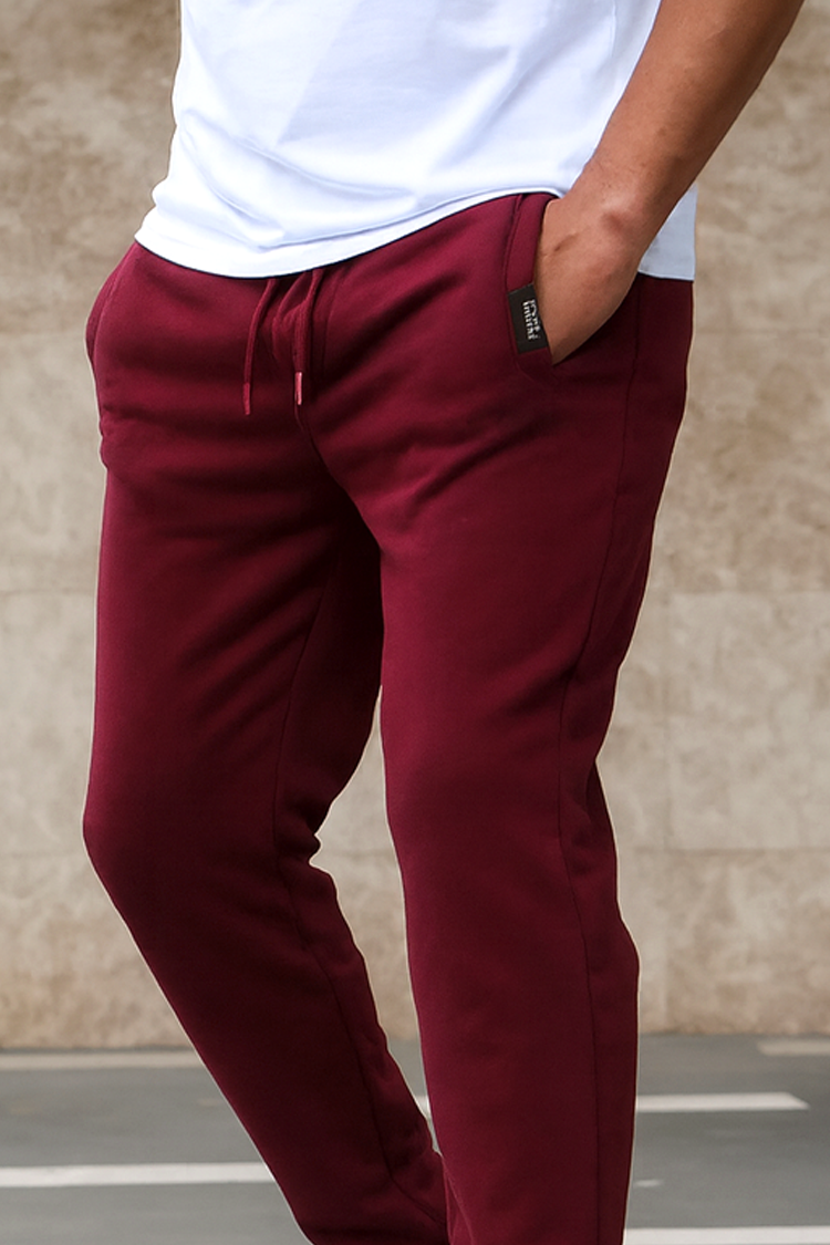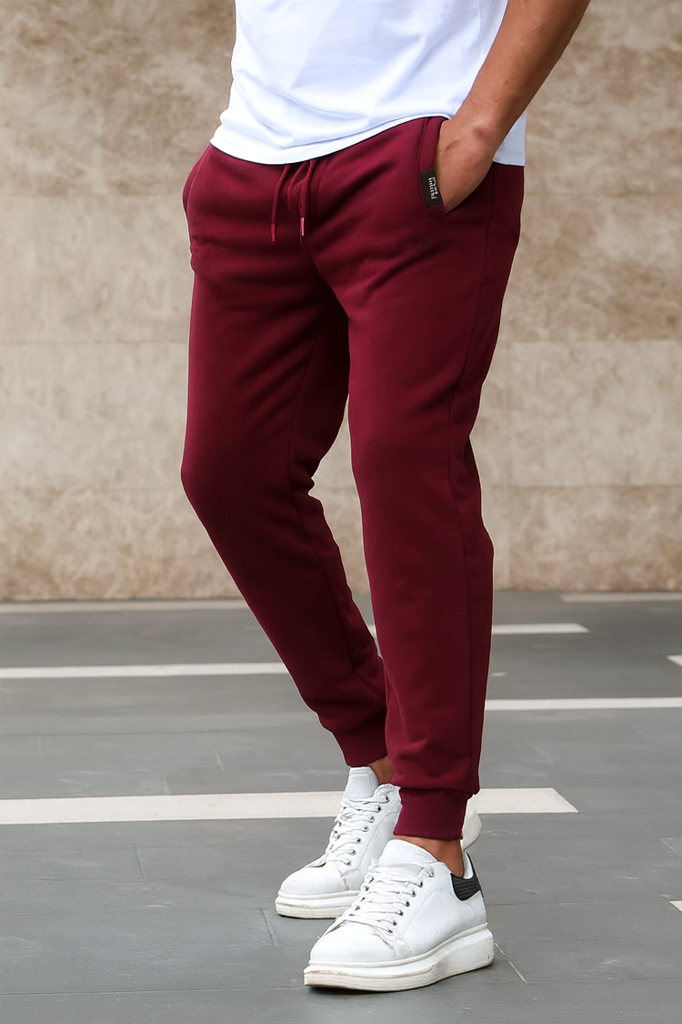 - Ανδρικό αθλητικό παντελόνι τύπου jogger σε μπορντό χρώμα, κατάλληλο για την καθημερινότητα ή τον αθλητισμό.