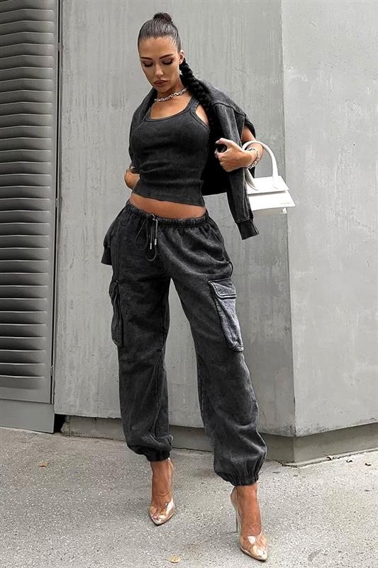 - Πρακτικό σετ τριών τεμαχίων - παντελόνι, φούτερ και τοπ, κατάλληλο για την καθημερινότητα και τον αθλητισμό.