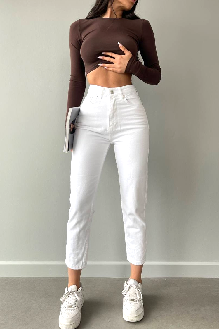 - Για μια ολοκληρωμένη εμφάνιση, σας συμβουλεύουμε να τα συνδυάσετε με ένα crop top, ένα μπουφάν από οικολογική δέρμα ή πάνινα παπούτσια.