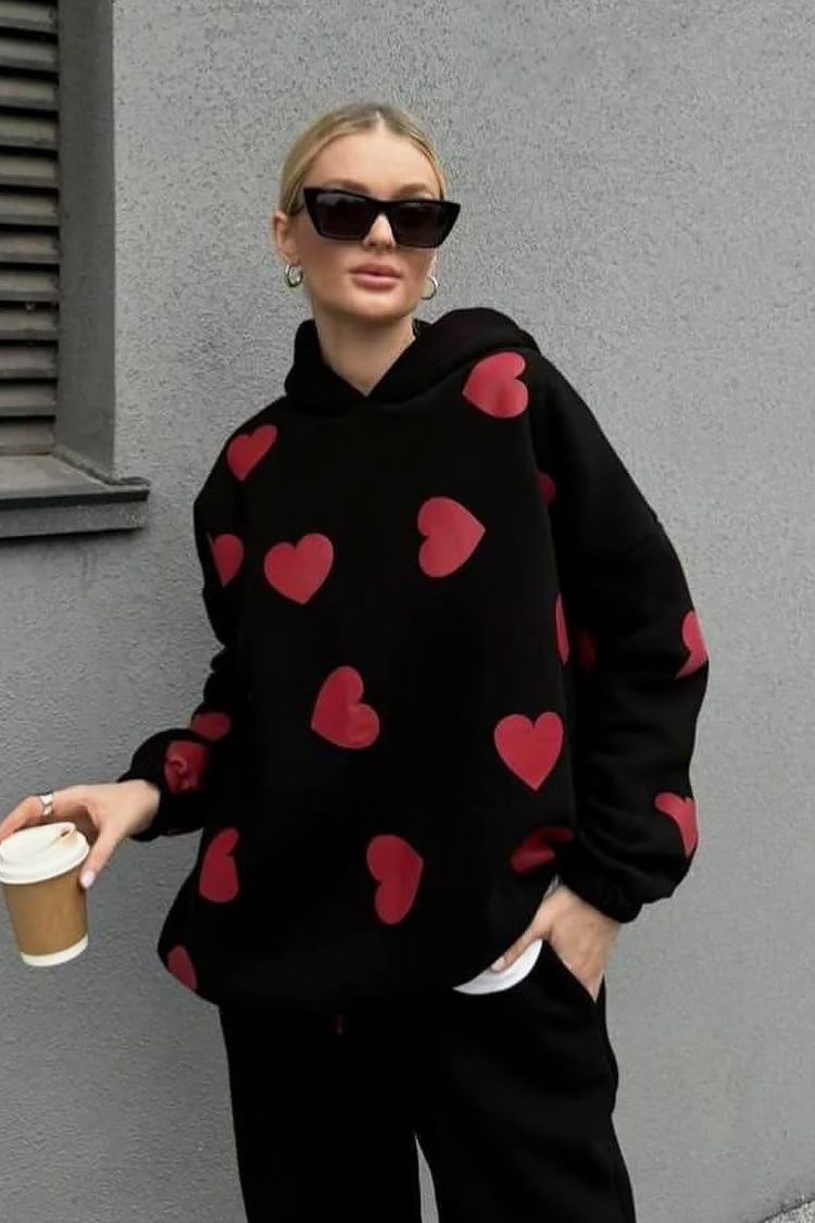 - Με άνετη γραμμή, κατάλληλη για κάθε φιγούρα, κουκούλα και γλυκό σχέδιο με καρδιές.