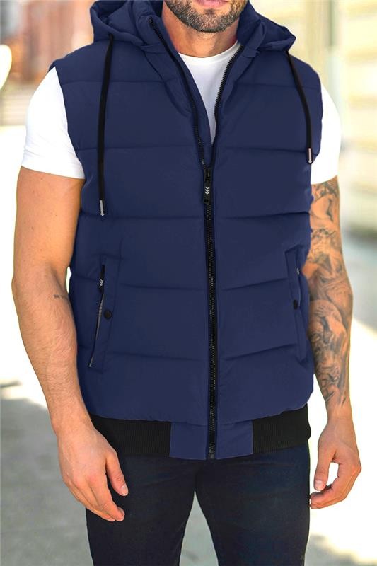 - Αθλητικό-καθημερινό ανδρικό γιλέκο σε μπλε χρώμα με καπιτονέ σχέδιο και οριζόντιες ραφές.