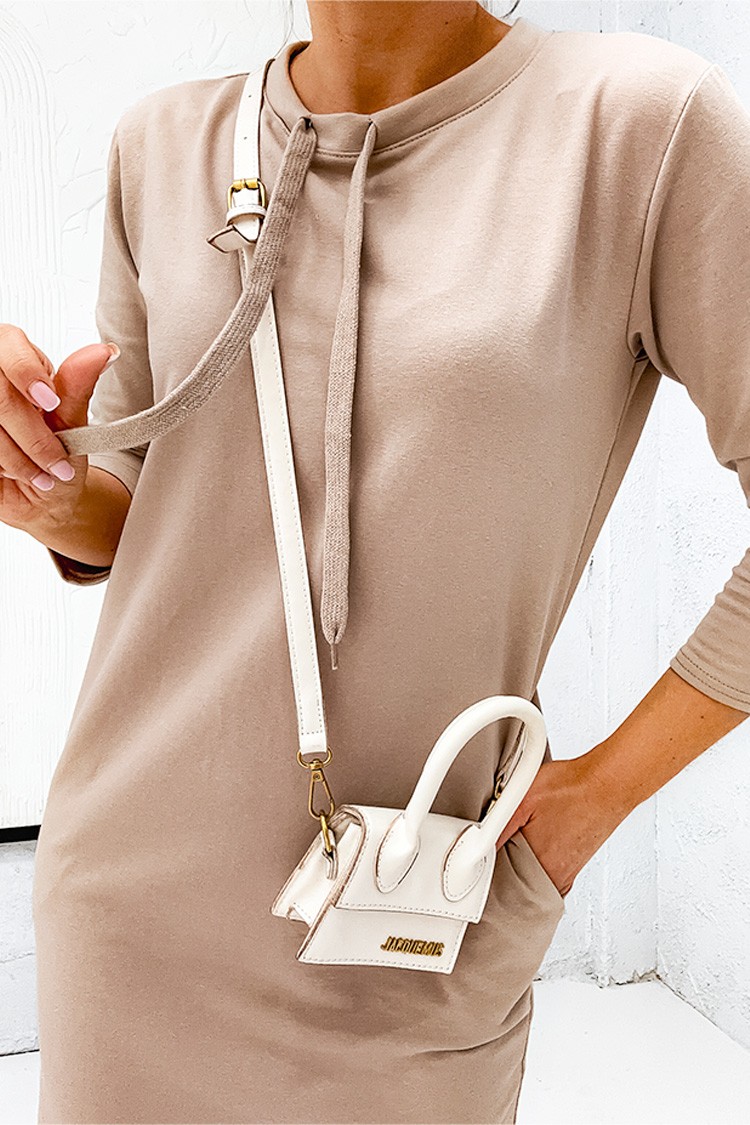 - Κοντό φόρεμα με μονόχρωμο μοτίβο, κατάλληλο για την καθημερινότητα.