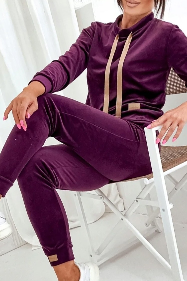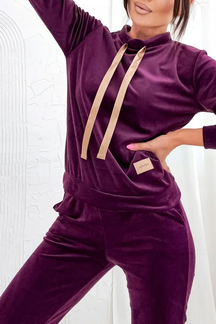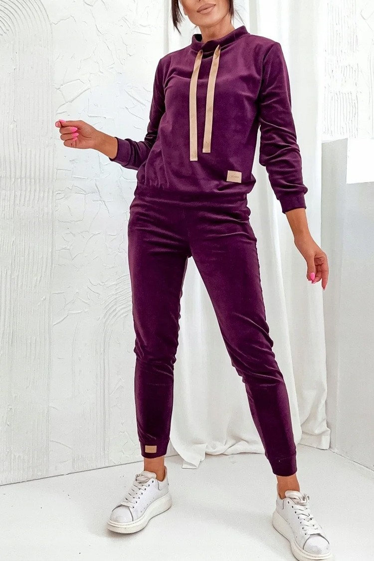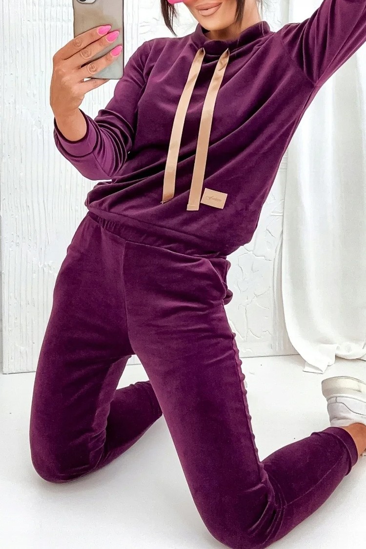 - Η μπλούζα έχει κλασικό μήκος και κουκούλα, ενώ το παντελόνι έχει εφαρμοστή γραμμή και ψηλή μέση.
