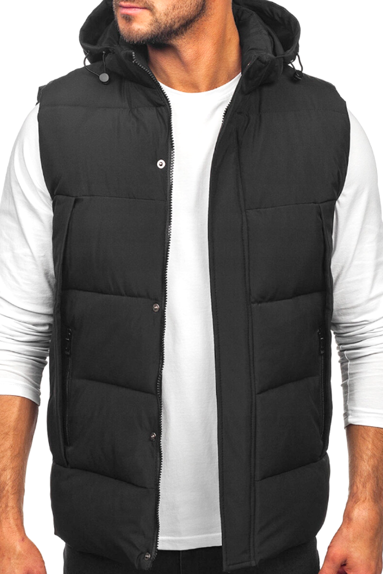 - Σπορ-καθημερινό ανδρικό γιλέκο σε μαύρο χρώμα με καπιτονέ σχέδιο και οριζόντιες ραφές.