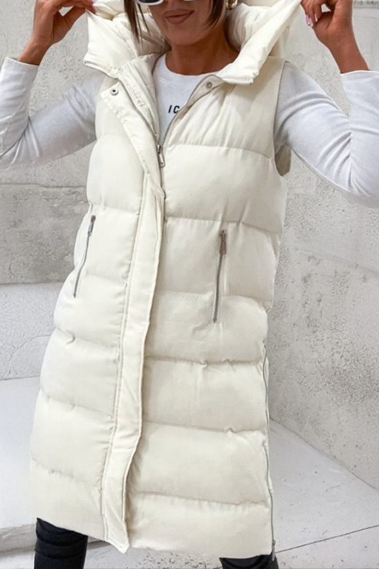 - Το γιλέκο έχει κλασική γραμμή, άνετο γιακά και μακρύ μήκος.