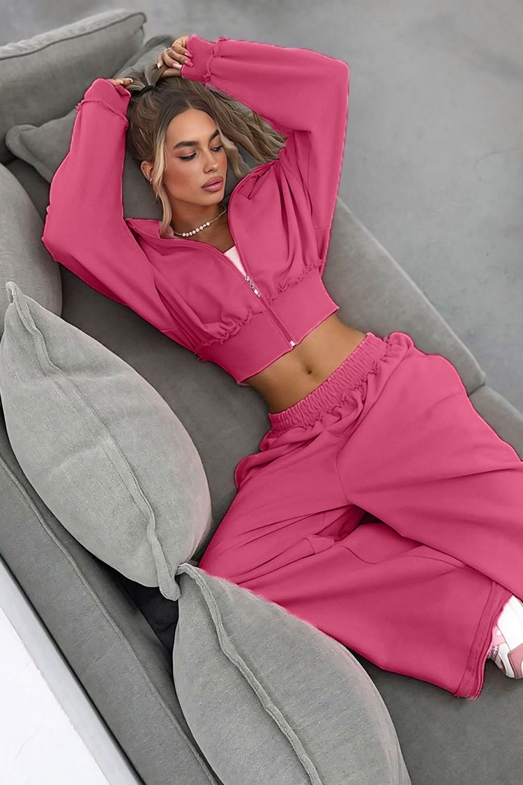 - Το σετ έχει ελεύθερη γραμμή. Το πάνω μέρος έχει φερμουάρ και κουκούλα, ενώ το παντελόνι έχει μοντέρνα φαρδιά μπατζάκια και ελαστική μέση.