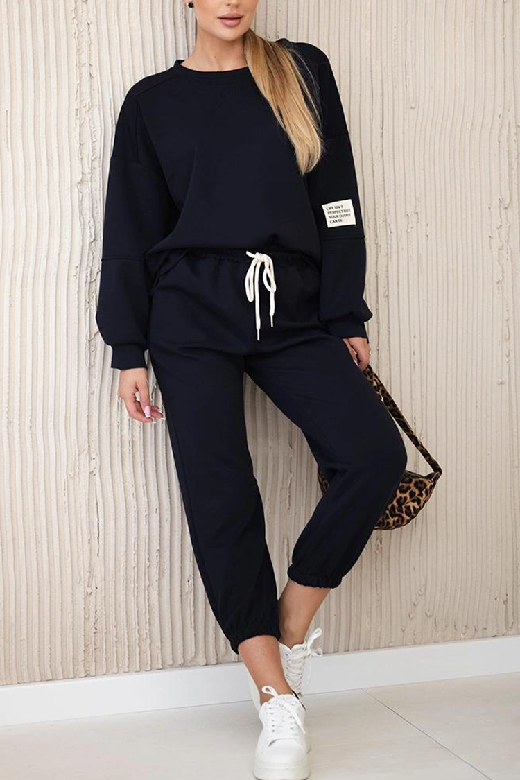 - Ελκυστικό σετ δύο τεμαχίων, που αποτελείται από φούτερ και παντελόνι.