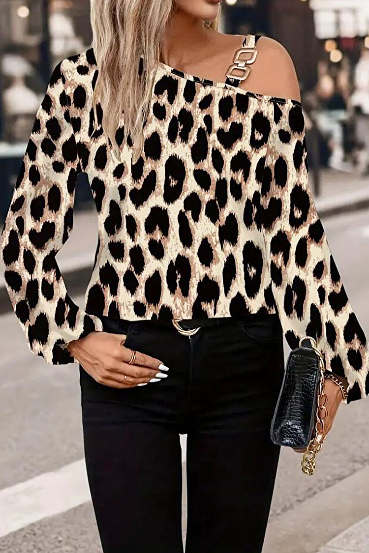 - Το μοντέλο έχει άνετη γραμμή, μακριά μανίκια και ασύμμετρη σέξι λαιμόκοψη.
