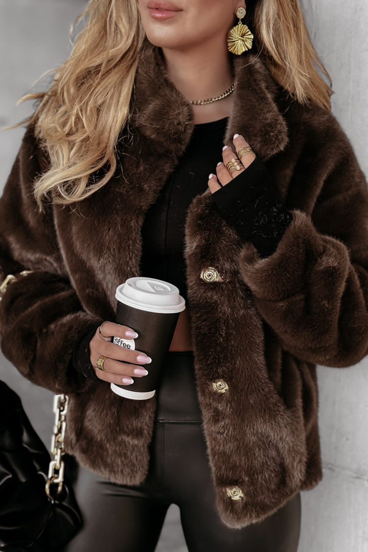 - Το μοντέλο έχει άνετη γραμμή, εντυπωσιακό κλείσιμο με κουμπιά και ψηλό κομψό γιακά.