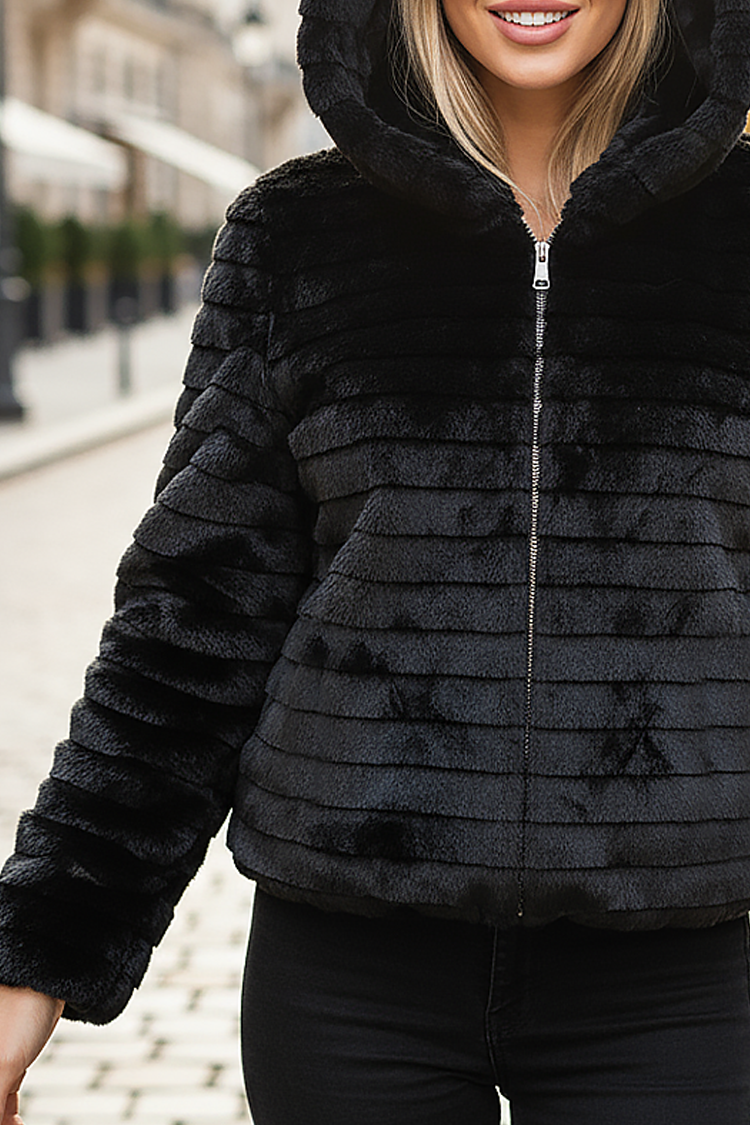 - Το μοντέλο έχει άνετη γραμμή, κουκούλα, κλασικό μήκος και κλείνει με φερμουάρ.