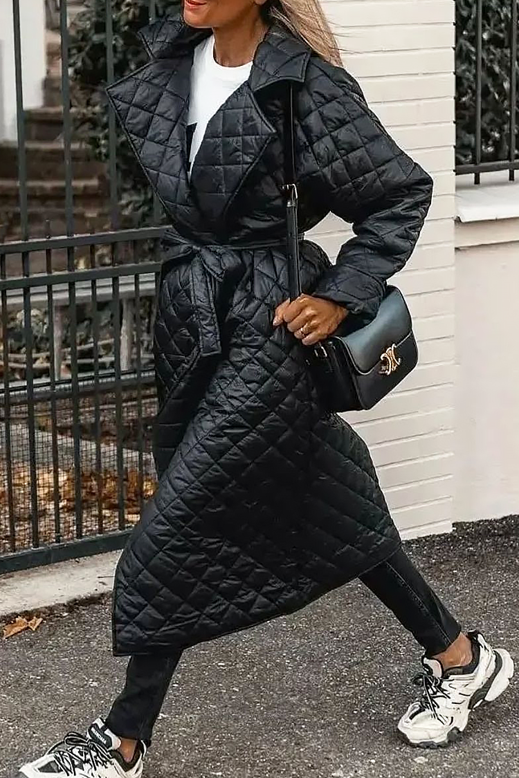 - Το μοντέλο έχει άνετη γραμμή, μακρύ μήκος και δένει με ζώνη.