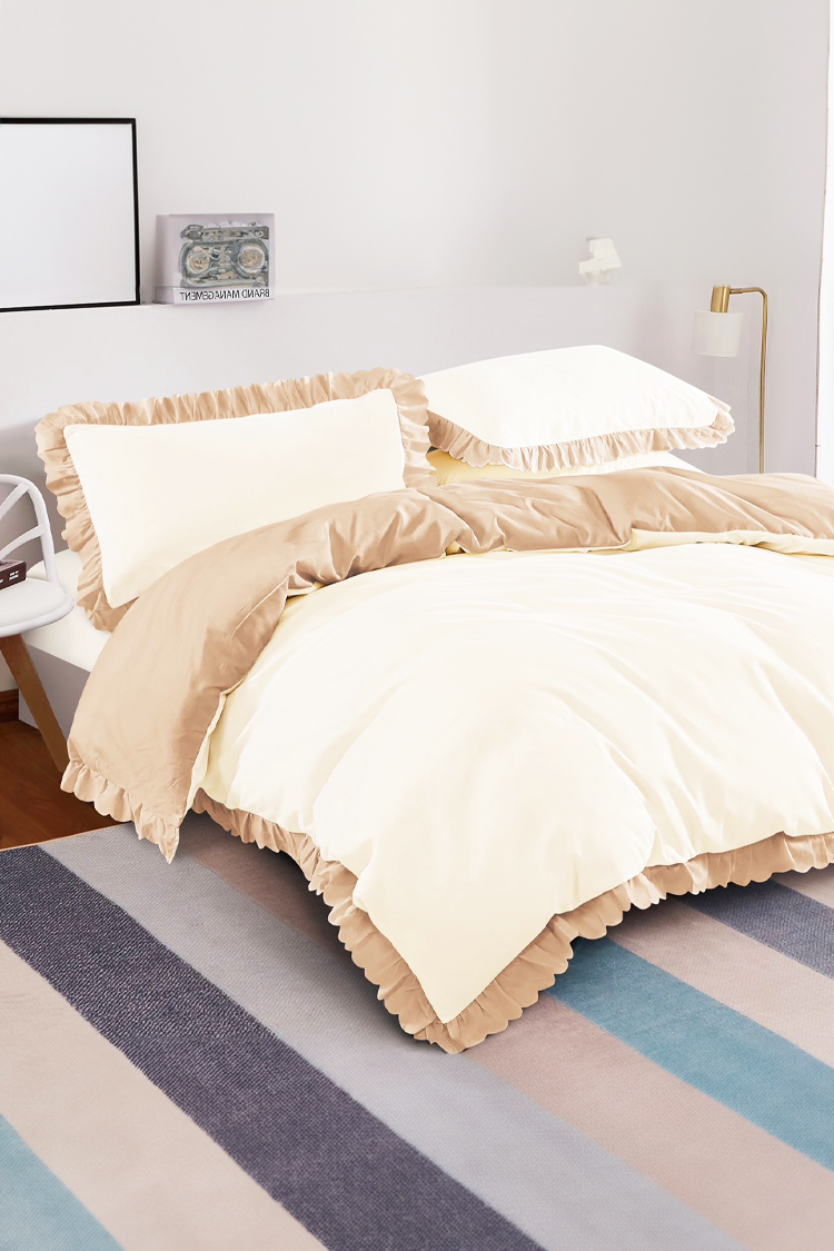 - Σετ κρεβατοκάμαρας από τρία μέρη με διαστάσεις 160x200 cm, κατασκευασμένο από υψηλής ποιότητας βαμβακερό σατέν.