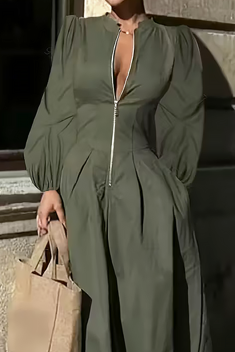 - Ελκυστικό μακρύ φόρεμα με φερμουάρ στην λαιμόκοψη, κατάλληλο για διάφορες περιστάσεις.