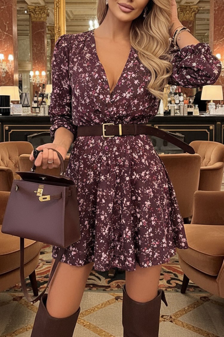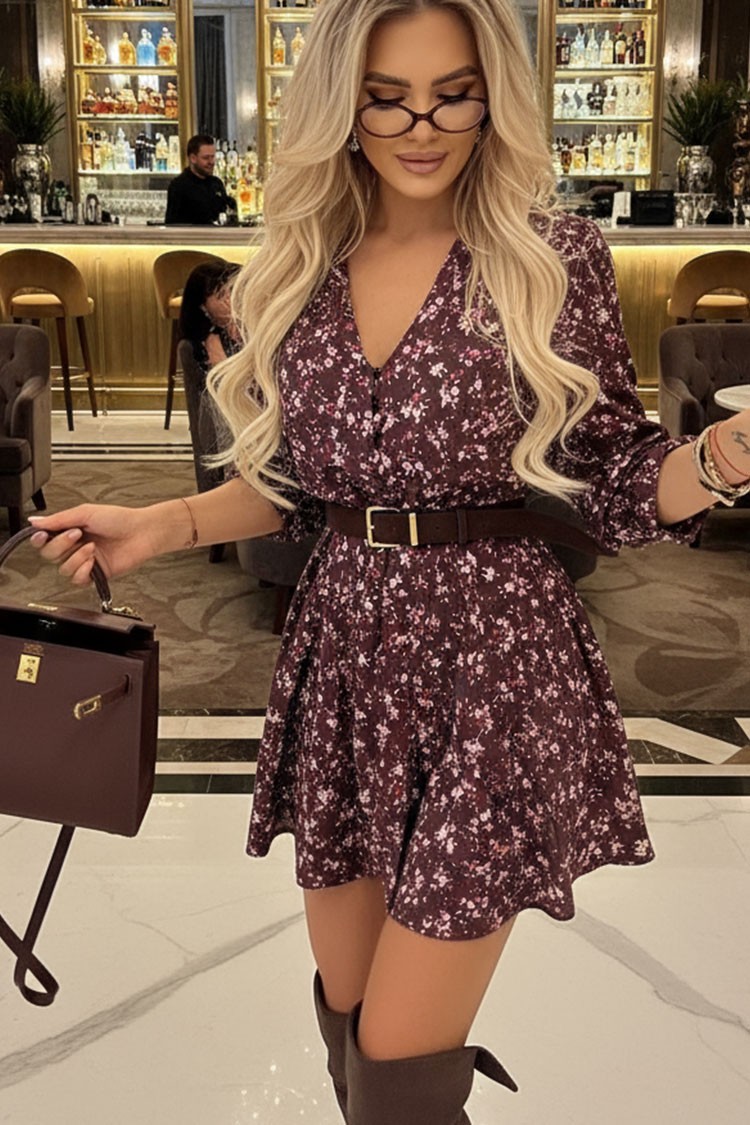- Το φόρεμα έχει μακριά μανίκια και ελκυστικό floral μοτίβο.