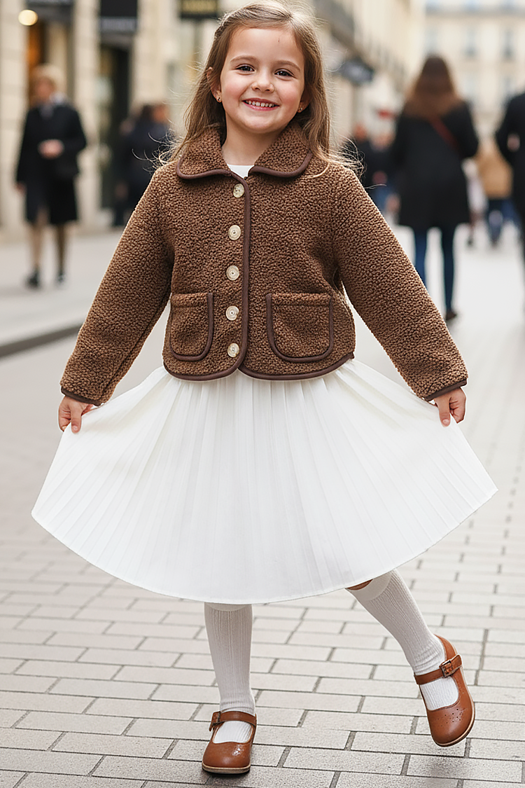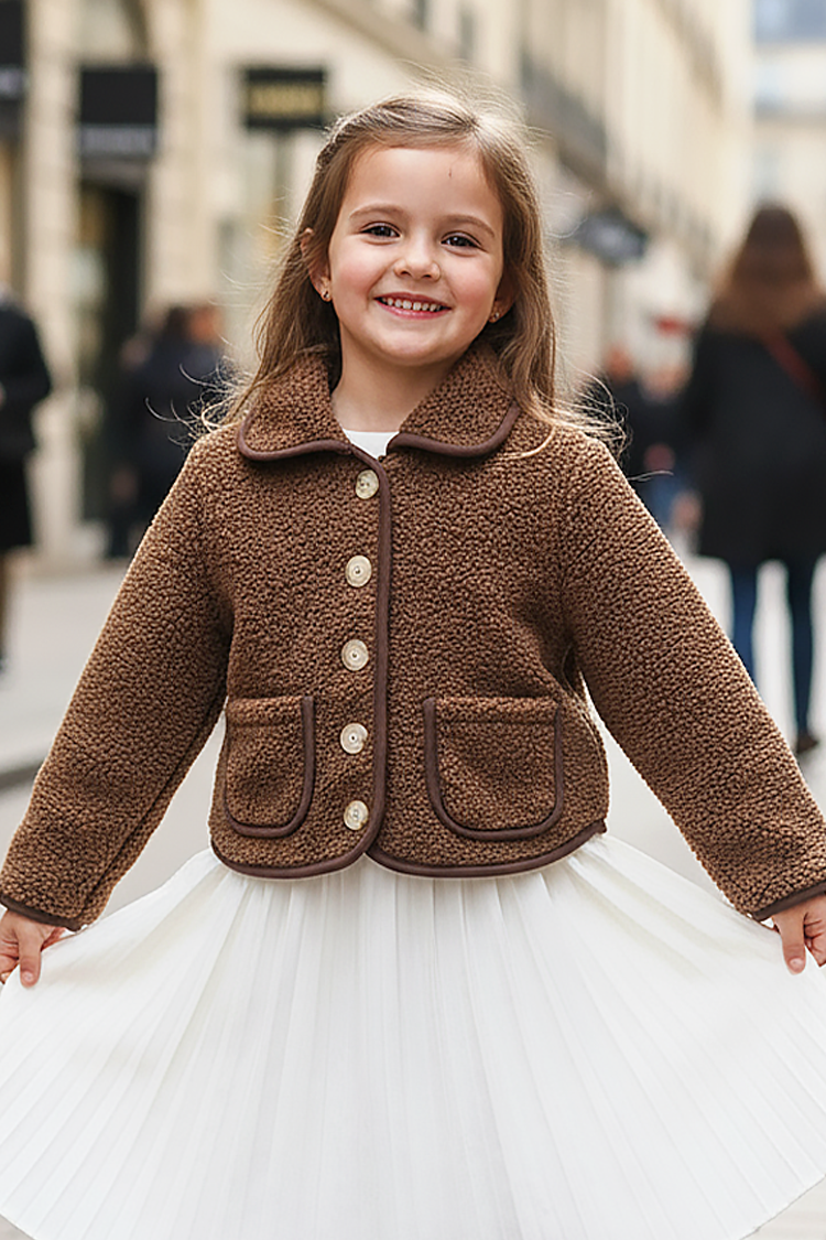 - Πρακτικό παιδικό μπουφάν για κορίτσια με μοντέρνο σχέδιο, άνετες τσέπες και γιακά.