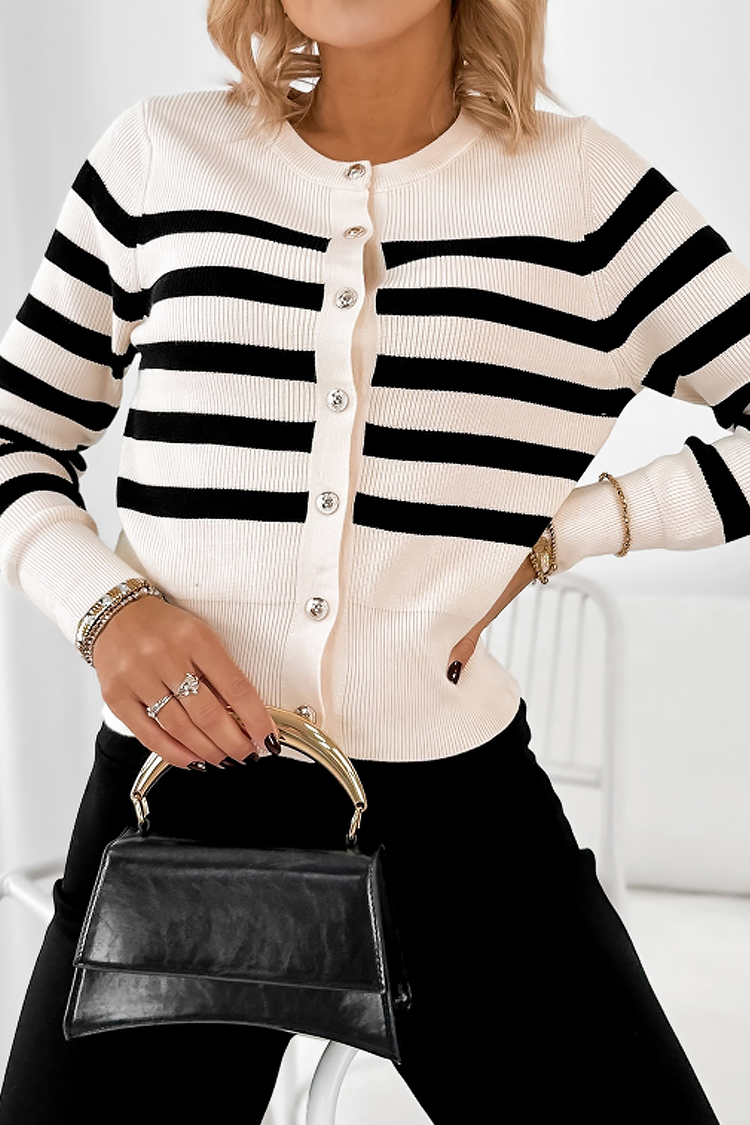 - Μαλακή και ζεστή γυναικεία ζακέτα με ριγέ σχέδιο, με εφαρμοστή γραμμή και άνετο σχεδιασμό, κατάλληλη για καθημερινή χρήση.