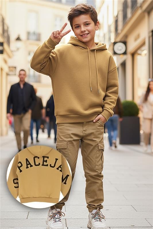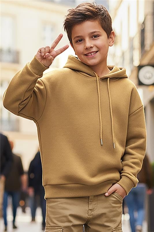 - Παιδικό φούτερ με μοντέρνο σχεδιασμό, κουκούλα, εντυπωσιακή επιγραφή και μακριά μανίκια.