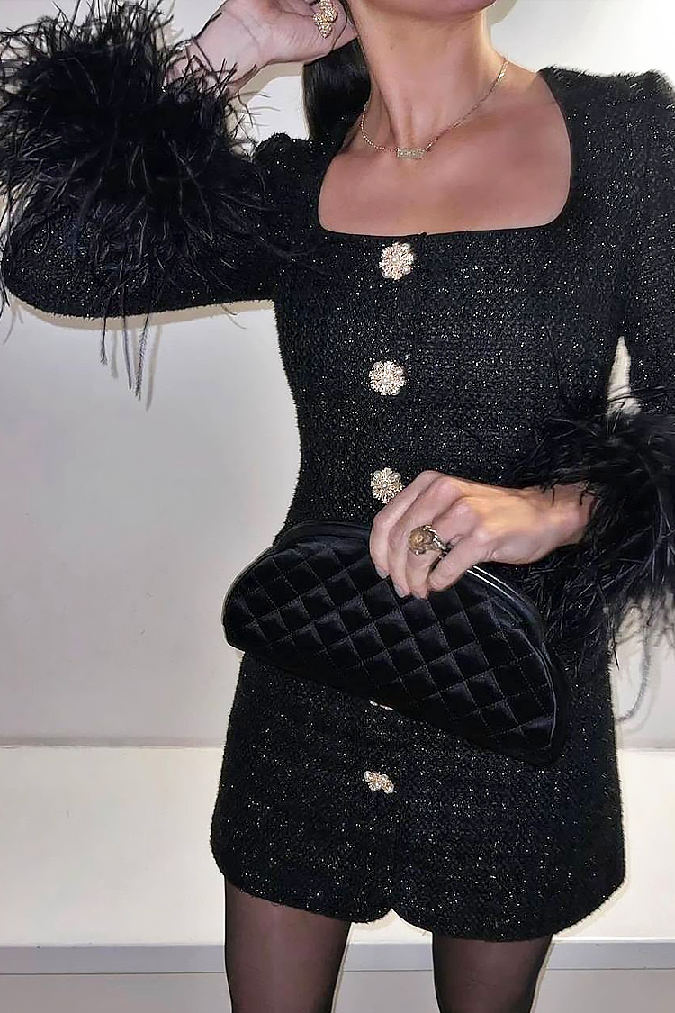 - Κοντό φόρεμα με κομψό σχεδιασμό, κατάλληλο για διάφορες περιστάσεις και ειδικές εκδηλώσεις.