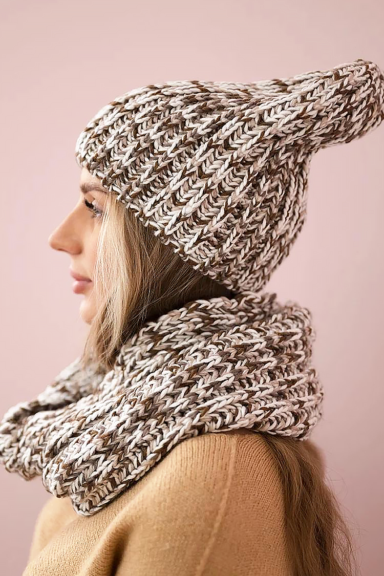 - Συμπληρώστε την εμφάνισή σας με ένα σετ δύο τεμαχίων – καπέλο και κασκόλ με ενδιαφέρον σχέδιο.