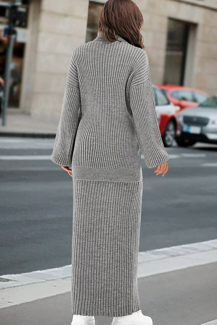 - Μοντέρνο σετ δύο τεμαχίων - άνετη φούστα και πουλόβερ με λιτό σχέδιο.
