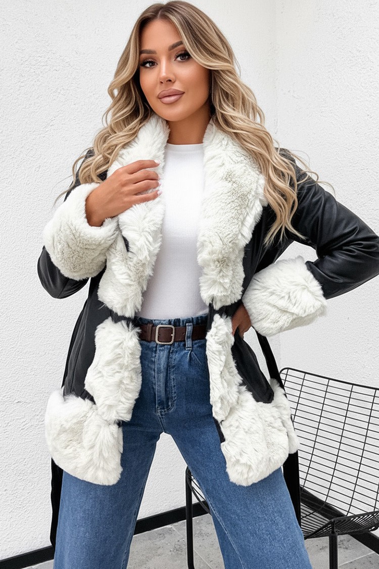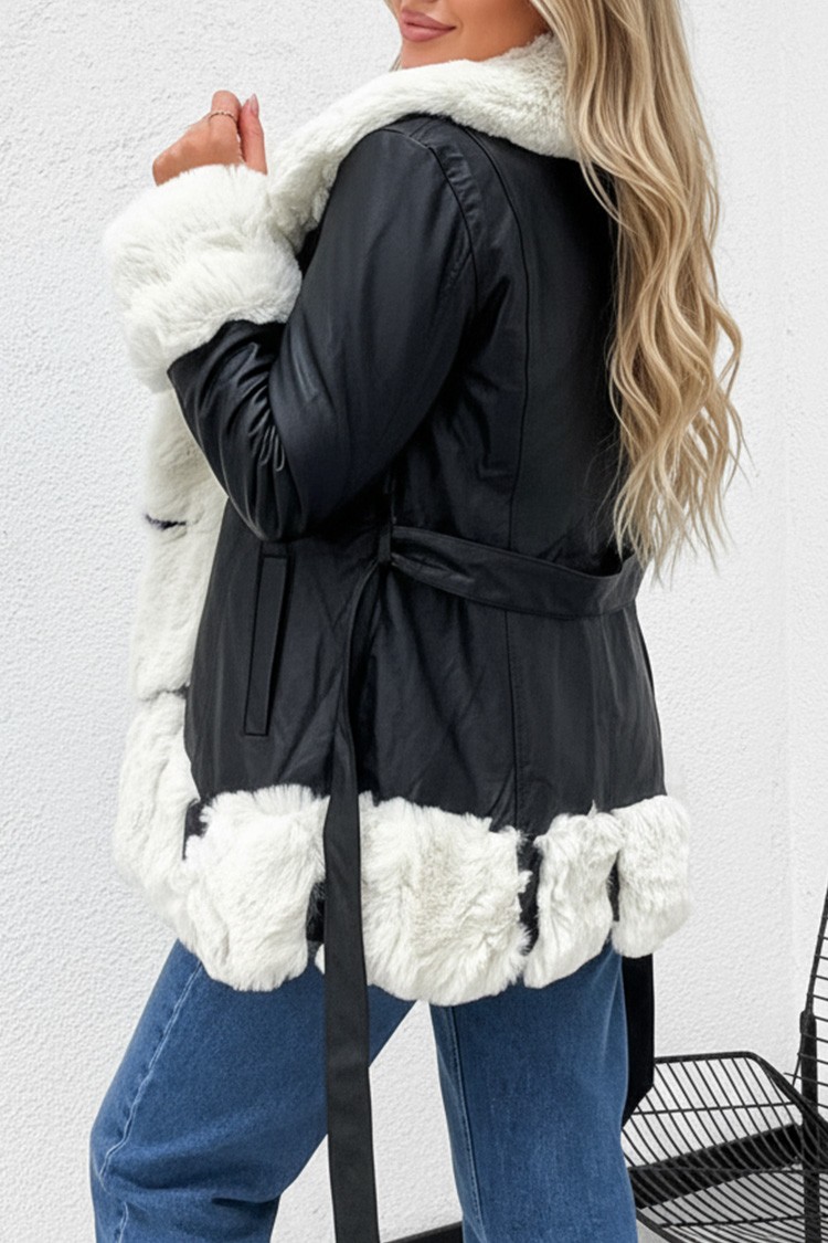 - Το μπουφάν έχει άνετη γραμμή, κορδόνια στη μέση και κούμπωμα με ζώνη.