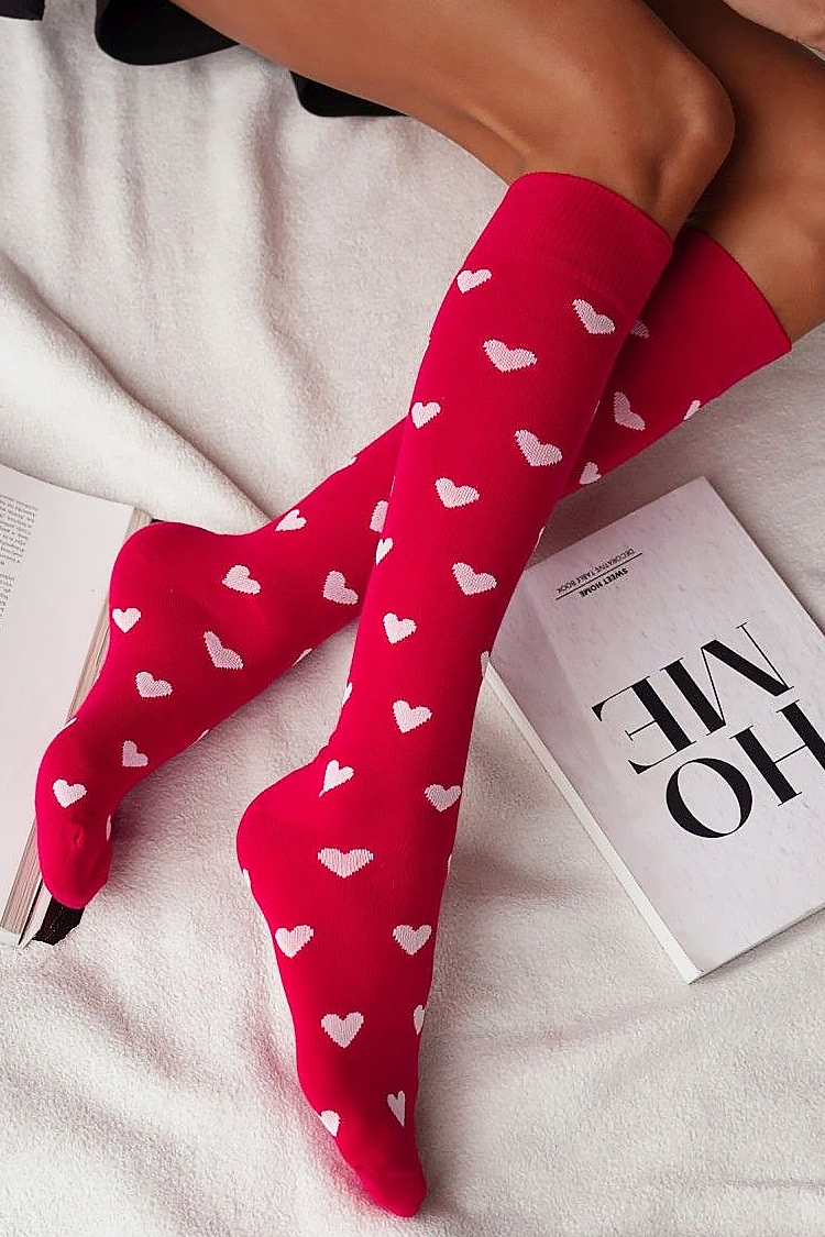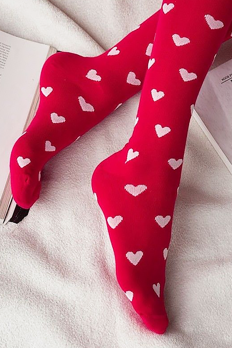 - Για να προστατευτείτε από τις κρύες μέρες, επιλέξτε γυναικείες κάλτσες με ελκυστικό σχέδιο και μοτίβο καρδιές.