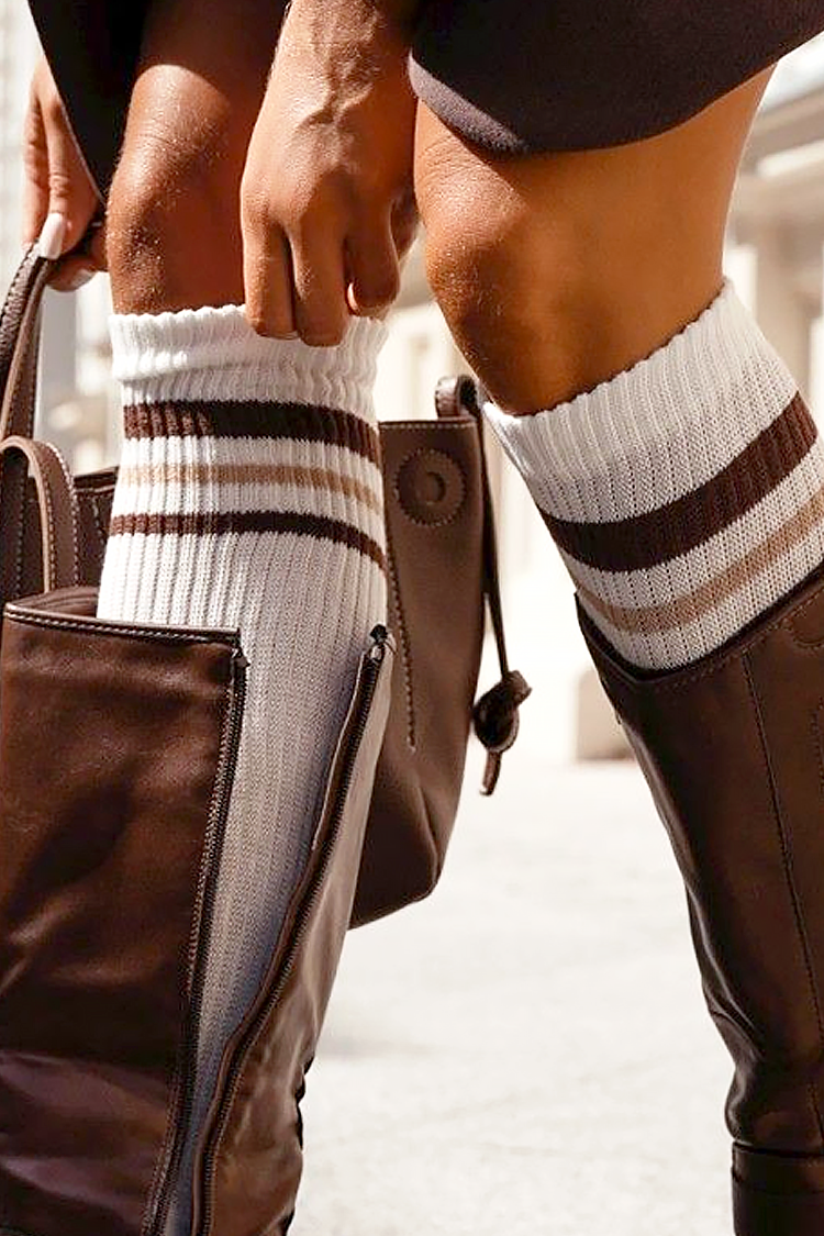 - Για να προστατευτείτε από τις κρύες μέρες, επιλέξτε γυναικείες κάλτσες με ελκυστικό σχέδιο και ριγέ μοτίβο.