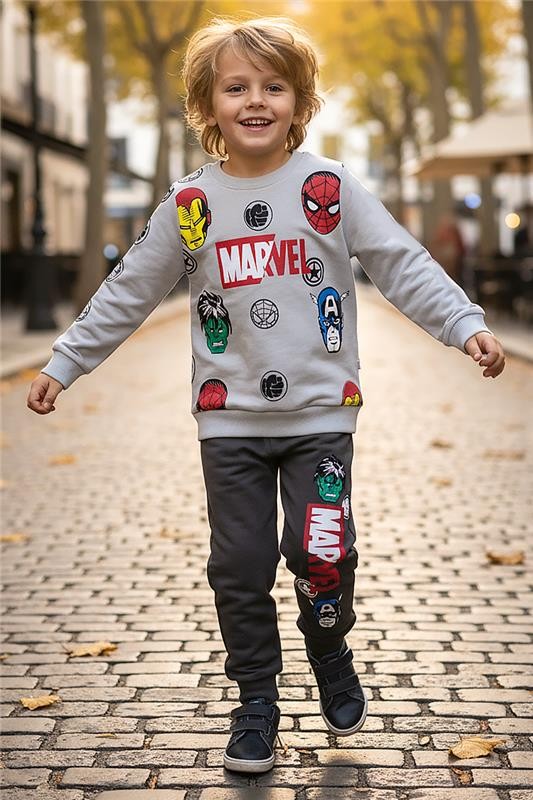 - Το πάνω μέρος έχει μακριά μανίκια και μοτίβο Marvel, ενώ το παντελόνι έχει ψηλή και ελαστική μέση.