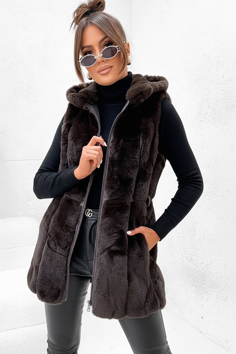 - Το γιλέκο έχει κλασική γραμμή, άνετη κουκούλα και μακρύ μήκος.