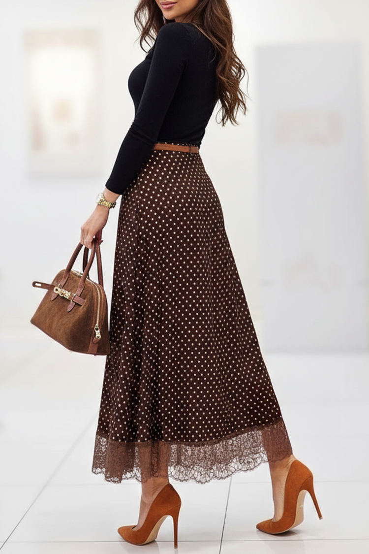 - Το μοντέλο έχει προσεγμένη γραμμή, ψηλή μέση, πουά μοτίβο και δαντέλα.