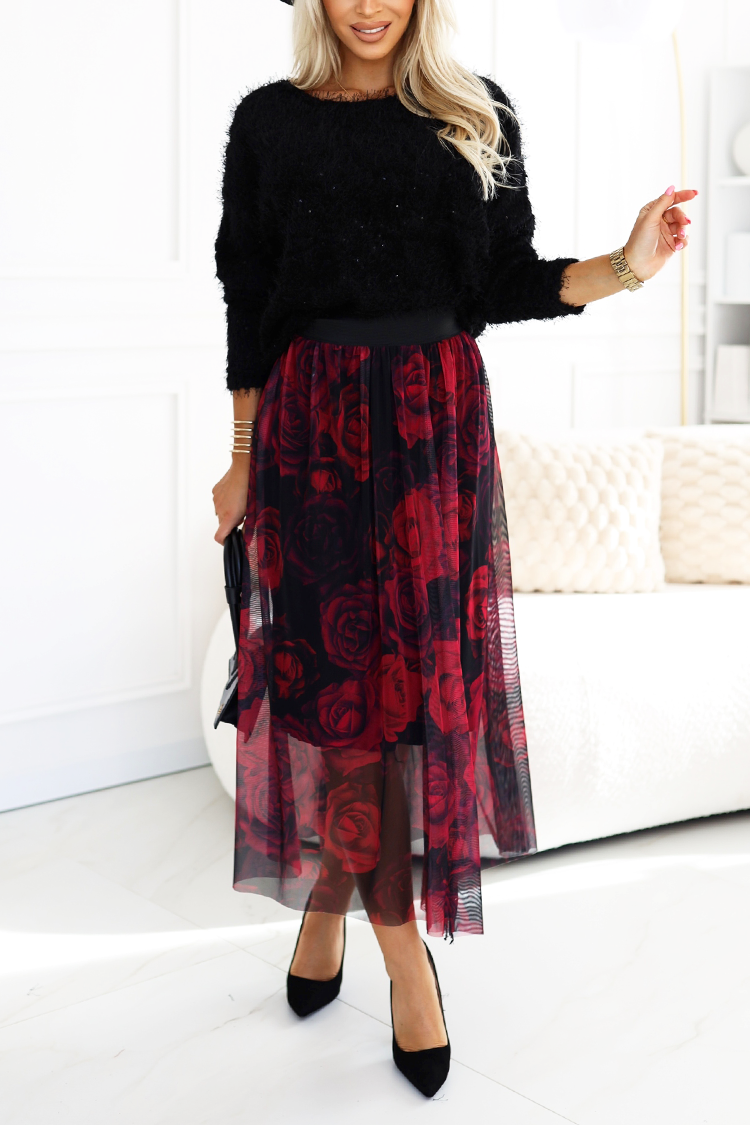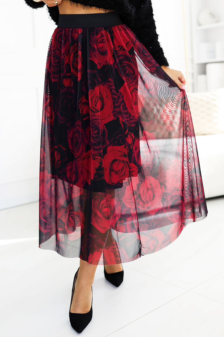 - Το μοντέλο έχει προσεγμένη γραμμή, ψηλή μέση, floral σχέδιο και τούλι.