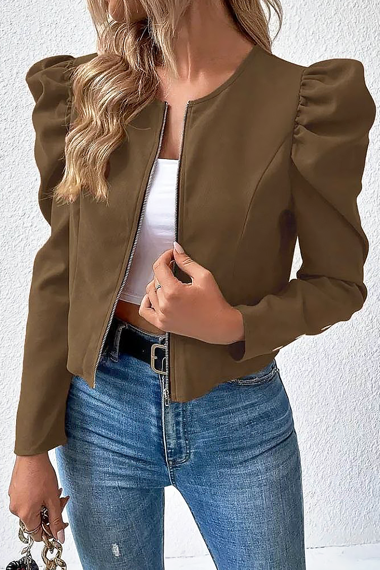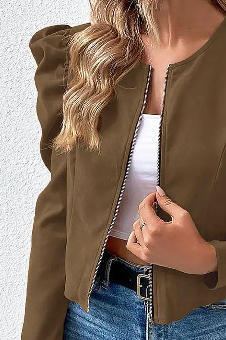 - Το μπουφάν έχει άνετη γραμμή, κομψά μανίκια και κλείνει με φερμουάρ μπροστά.