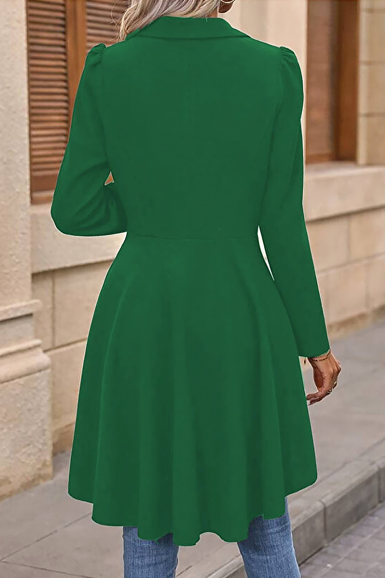 - Το μοντέλο έχει ασύμμετρη και κομψή γραμμή, γιακά και όμορφο πράσινο χρώμα.