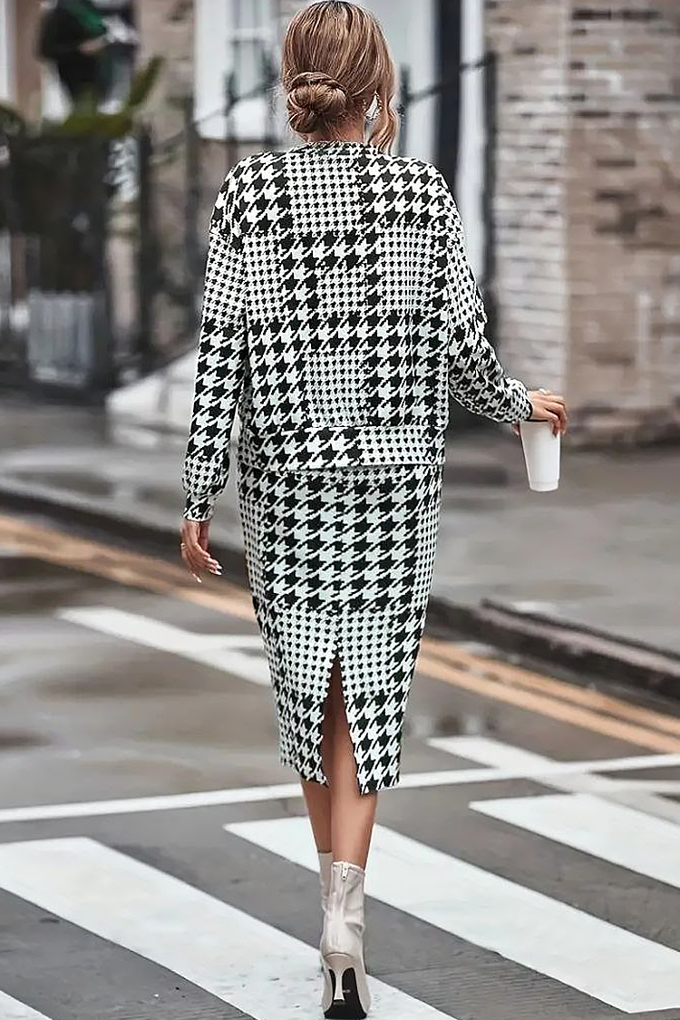 - Η μπλούζα έχει κλασική άνετη γραμμή, ενώ η φούστα έχει midi μήκος και σέξι σκίσιμο.