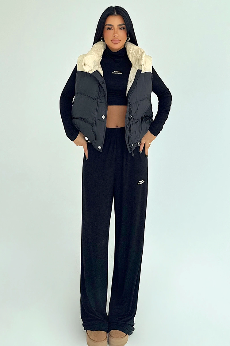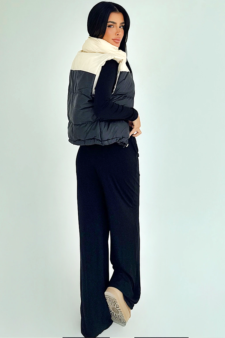 - Το γιλέκο έχει κλασική γραμμή, άνετο γιακά και κοντό μήκος.