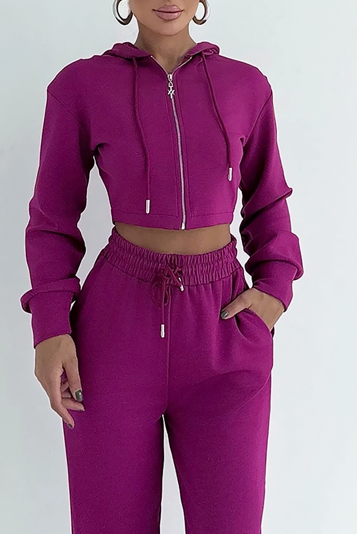 - Καθημερινό γυναικείο σετ δύο τεμαχίων με μονόχρωμο σχέδιο.