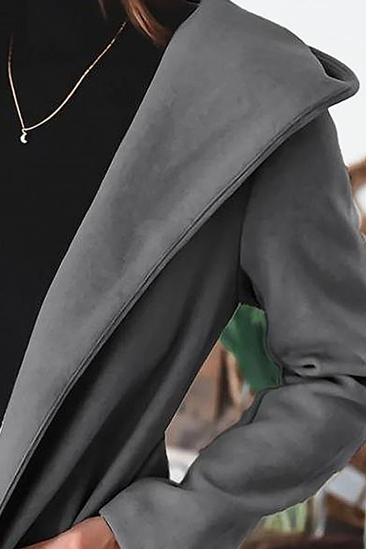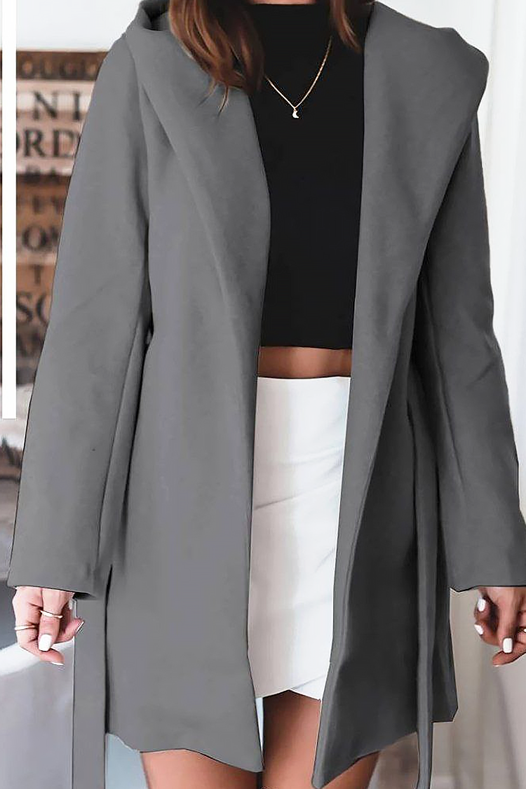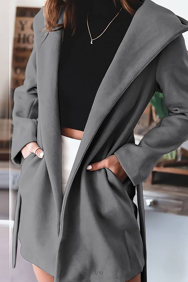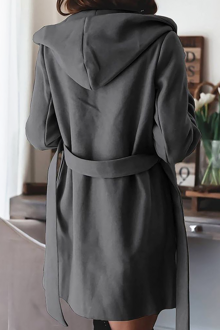 - Το μοντέλο έχει άνετη γραμμή, γιακά, τσέπες, ζώνη από το ίδιο ύφασμα και κουκούλα.