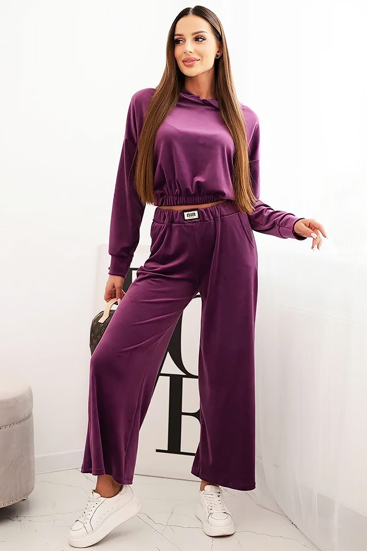 - Το σετ περιλαμβάνει άνετο παντελόνι με τσέπες και ψηλή μέση και φούτερ με κουκούλα.