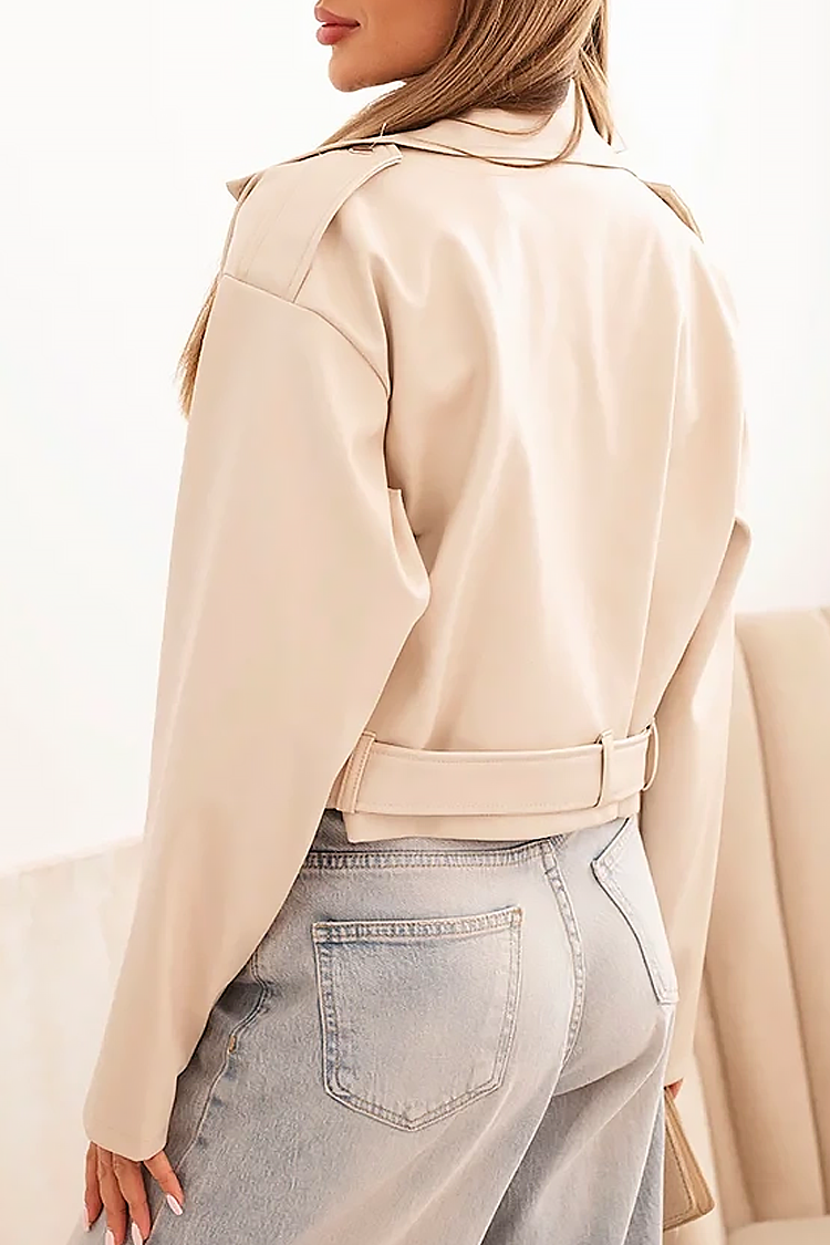 - Το μοντέλο έχει άνετη γραμμή, κομψό γιακά, κλείσιμο με φερμουάρ και ζώνη από το ίδιο ύφασμα.