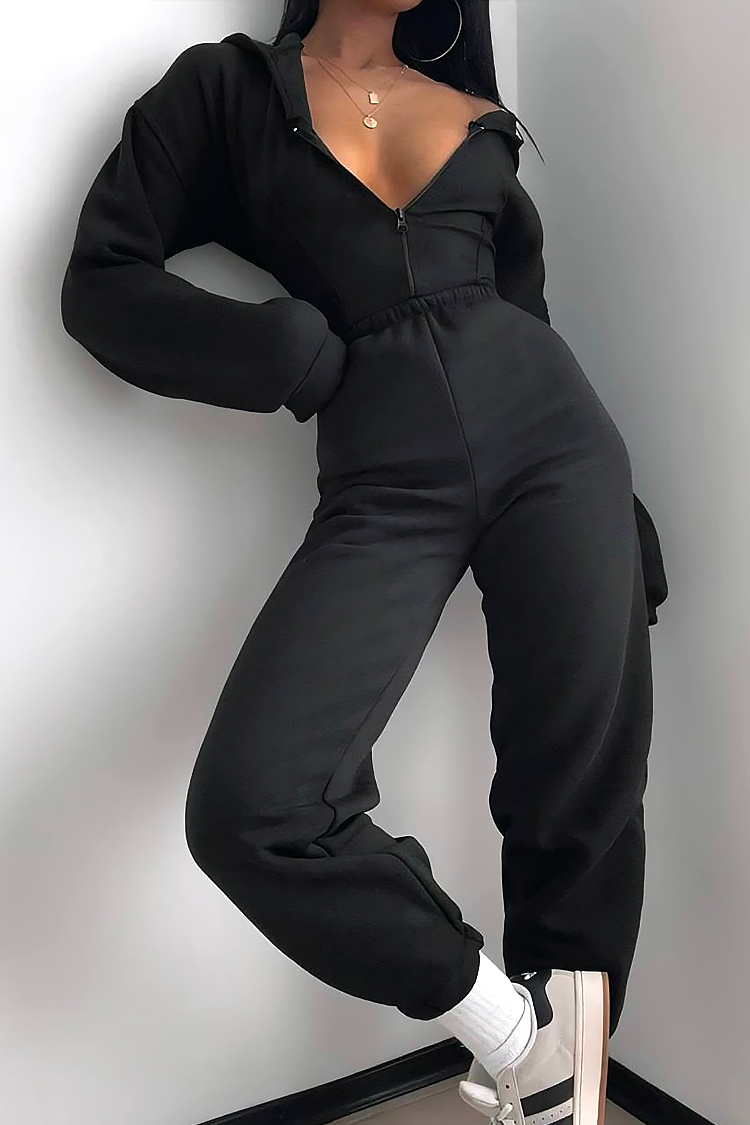 - Γυναικεία ολόσωμη φόρμα με μονόχρωμο σχέδιο και εντυπωσιακό κλείσιμο, κατάλληλη για καθημερινή χρήση.
